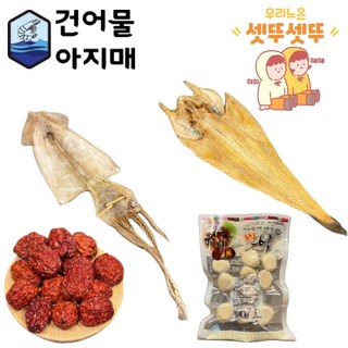 제수용건어물 마른가오리 대추 약과 깐밤 대구포 유과 마른 문어 곶감 오징어 황태포 건홍합 합자, 마른 오징어+황태포+공주 깐밤+마른대추, 1개
