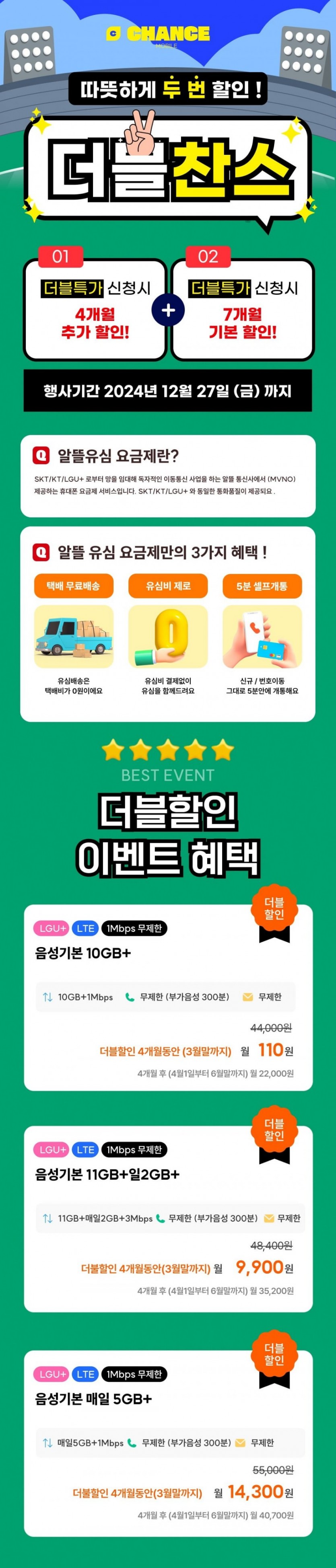 찬스모바일 초특가 작성자 정보 관리자 작성 작성일 2024.12.23 19:53 컨텐츠 정보 1,972 조회 0 추천 0 비추천 목록 본문 찬스모바일쉽고 빠른 개통, 통신비 절감의 찬스!https://chancemobile.co.kr/view/distributor/phone_plan_distributor.aspx?poscd=bcd188635790aefcd14ba77b3f85b1c0 알뜰폰 10GB+1MPS 3월30일까지 100원알뜰폰 11G+2GB+3MBPS 3월30일까지 9900원 . 100기가+5mps . 14000원 . 3월까지쓰고 4월에 번호이동 하심 될거 같네요.그리고 테더링 필요하신분은 엘지 특성상 E심 섞어서 하는 것도 추천 드립니다. E심 개통도 가능하다고합니다.#viral#fyp#tiktok#comedy 0 추천 0 비추천 SNS 공유 관련자료 링크 https://chancemobile.co.kr/view/distributor/phone_plan_distributor.aspx?poscd=bcd188635790aefcd14ba77b3f85b1c0 807 회 연결 이전 리쏘 영원씨 안마의자 작성일 2025.02.08 21:35 다음 “나야, 흑백요리사” 출연진들의 식당 리스트 총정리! 작성일 2024.10.11 16:23 댓글 0 등록된 댓글이 없습니다. 로그인한 회원만 댓글 등록이 가능합니다. 목록