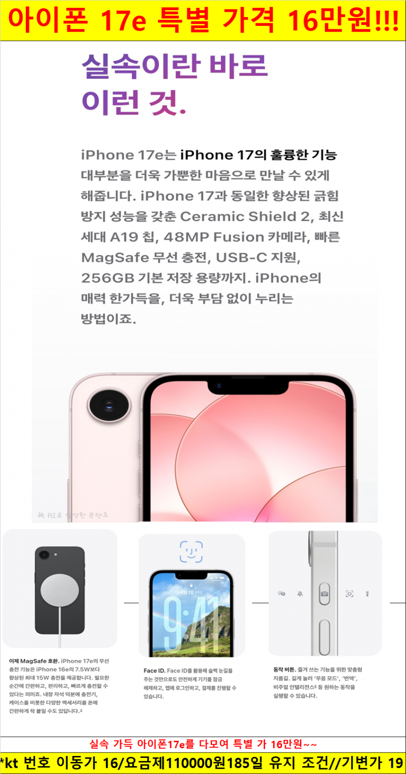 모바일/상품권 분류 아이폰17e SNS 공유 작성자 정보 물어보세요 쪽지보내기 메일보내기 자기소개 아이디로 검색 전체게시물 쪽지보내기 메일보내기 자기소개 아이디로 검색 전체게시물 작성 작성일 2026.03.26 12:47 컨텐츠 정보 119 조회 0 추천 0 비추천 목록 관련자료 쇼핑몰 tlsehfla 상품명 아이폰17e 가격 16원 배송 문의 본문 아이폰 17e 특별가~~~~문의 주세요카톡ID:moyeo82 0 추천 0 비추천 SNS 공유 관련자료 이전 핀다이렉트SK망 4개월 5900원 100기가+5mpbs 작성일 2026.04.03 20:56 다음 헬로모바일 코드입력시 10만원 추가증정! 3월17일~23일 단 7일간만 진행 작성일 2026.03.17 11:44 댓글 0 등록된 댓글이 없습니다. 로그인한 회원만 댓글 등록이 가능합니다. 목록