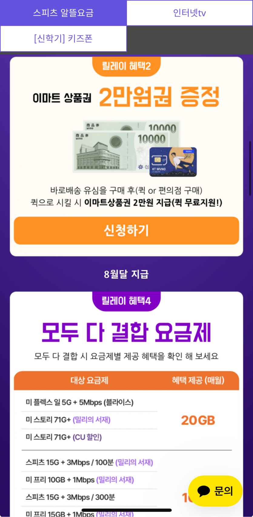 [스피츠] 알뜰 요금제 3800원부터 +밀리의서재+이마트상품권 2만원+ 샤오미 이어폰지급