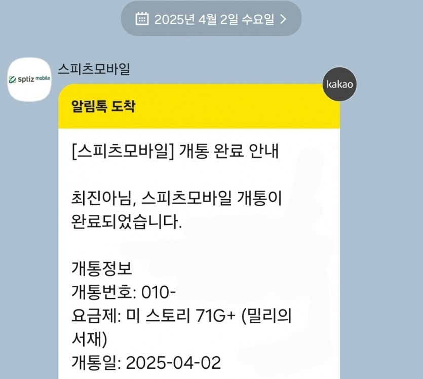 다음날 오전 11시쯤 자동으로 개통이 되었어요.